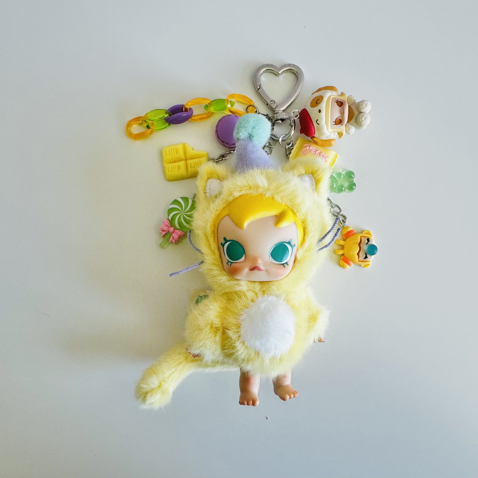Baby Molly Pocket Friends Series Vinyl Plush Pendant hand made into the cutest key chain / bag charm.