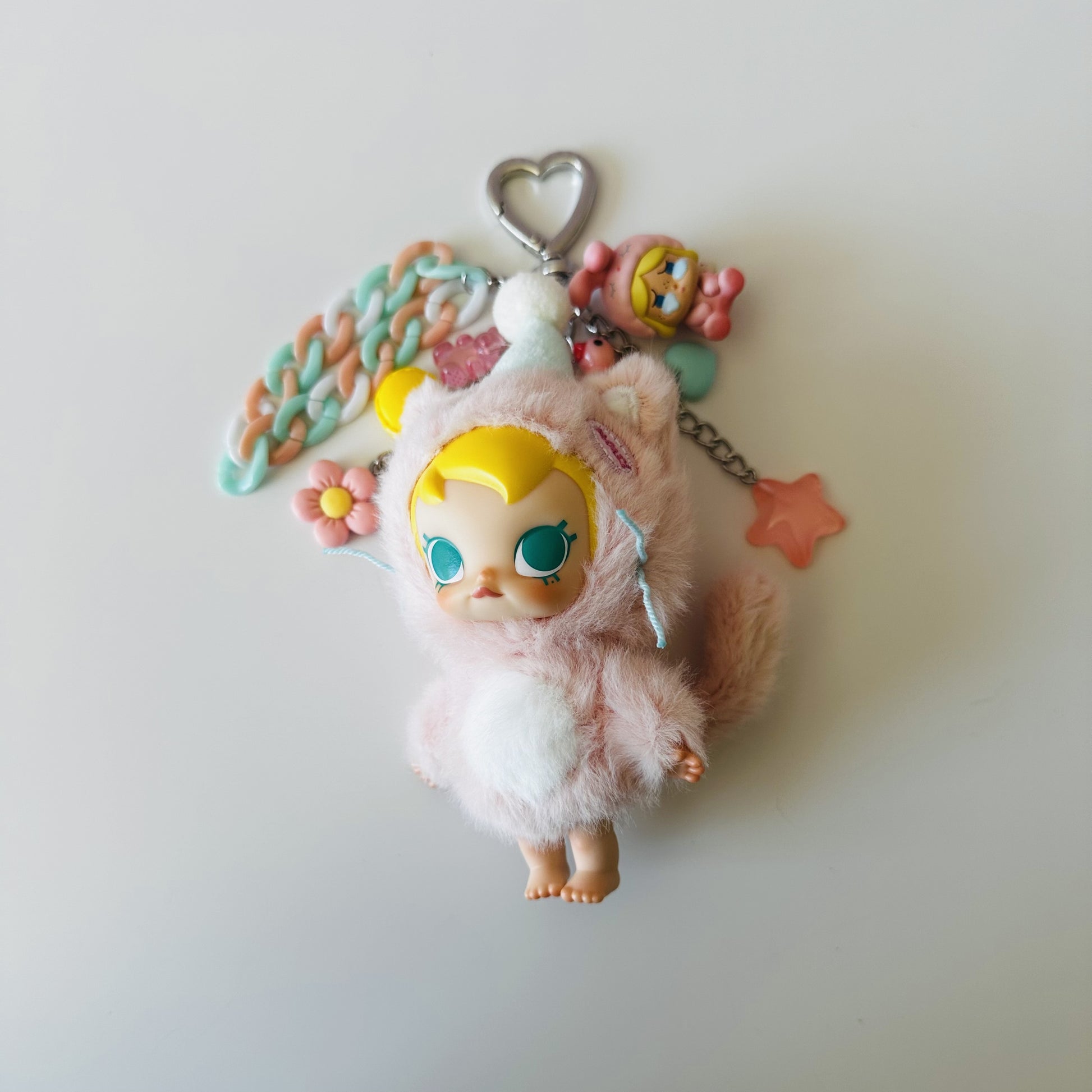 Baby Molly Pocket Friends Series Vinyl Plush Pendant hand made into the cutest key chain / bag charm.