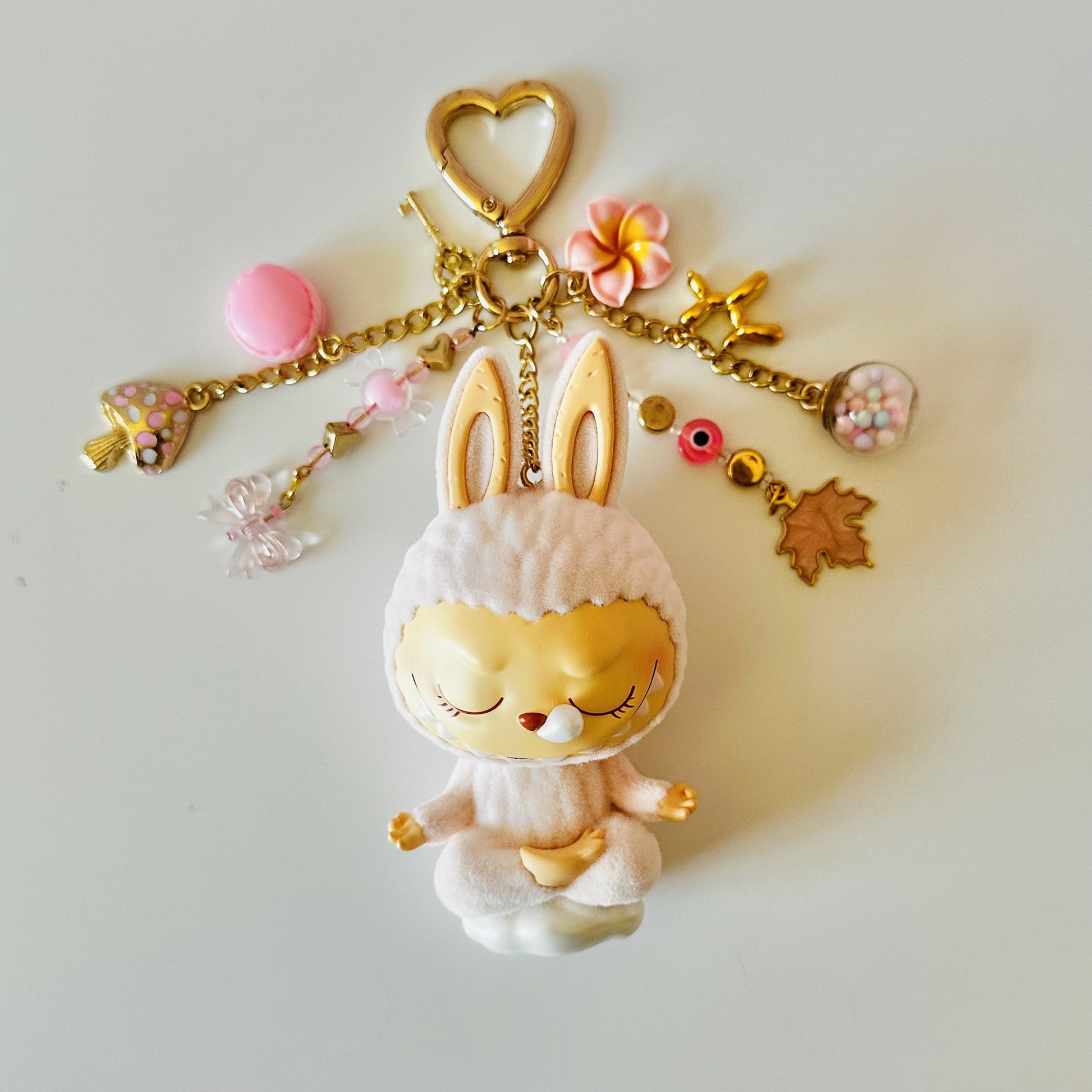 The Monster - Lazy Yoga figurine hand made into the cutest key chain with stunning gold details.